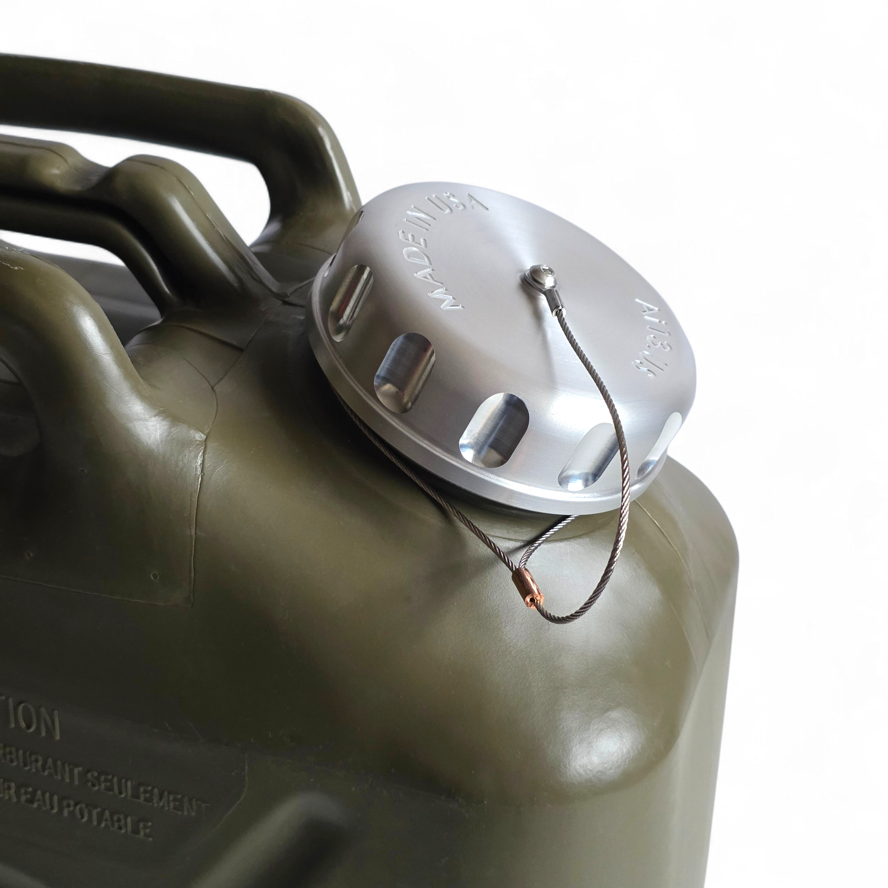 Upgrade your 20-liter military fuel container with a cap built to match the durability of the can itself.